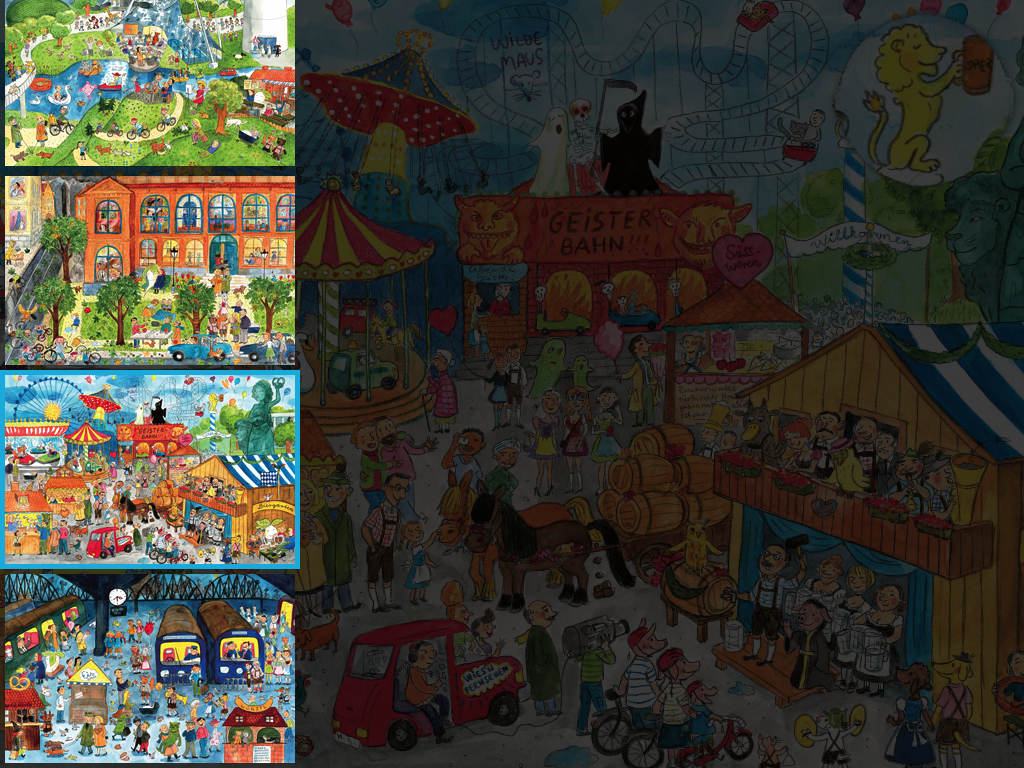 Munich Wimmelbook App includes 7 large wimmel pages and comes with endless searching!