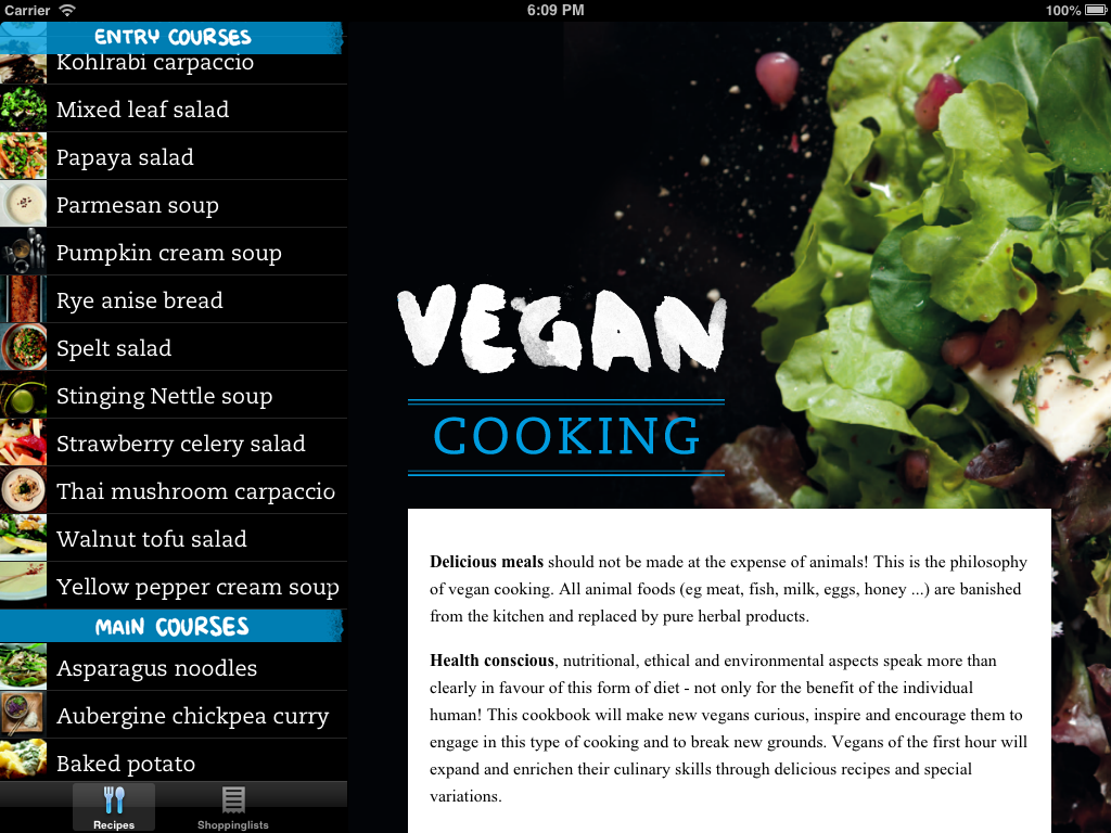 Vegan Cooking iPad iPhone Application