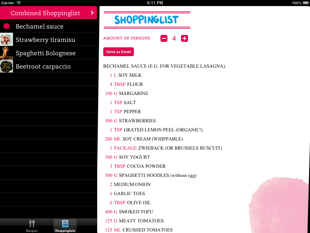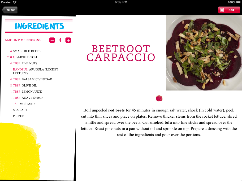 Now sometimes a project influences the way of life in general, especially when it enlightens about things such as ethically correct cooking and delicious recipes. This application also had Jason’s head twisting around the so-called splitview controller, a special kind of display to show two different contents on one screen and at the same time. GO VEGAN: FOR THE BENEFIT OF ALL BEINGS!